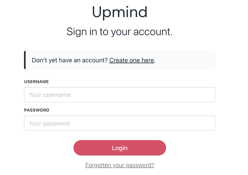 Admin Panellogin page at https://my.upmind.com/login. - Enter your credentials to log in.
