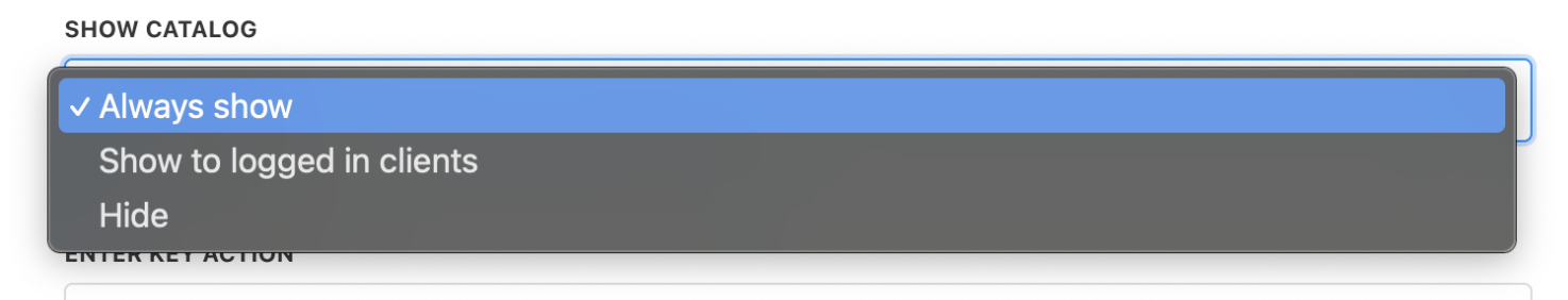 - Show to Logged in — Catalog visible only to logged-in customers.