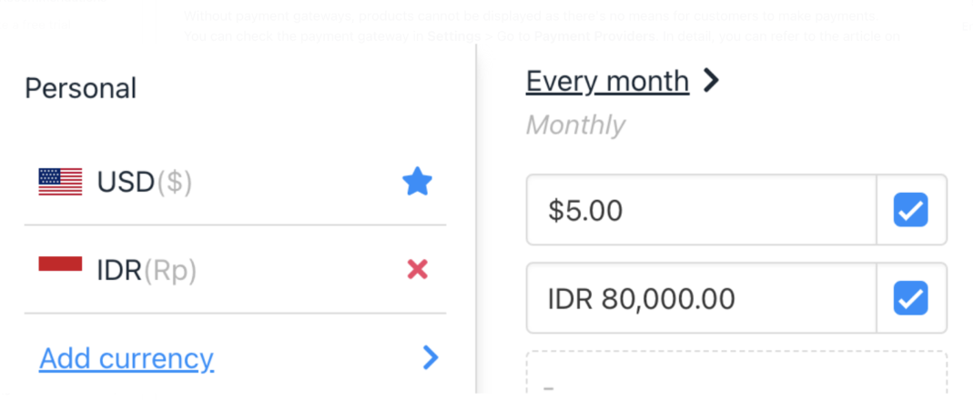 You can verify your payment gateways under Settings > **Payment Providers **under E-commerce settings, to make sure they support the currencies assigned to your products (found in Product > Billing).